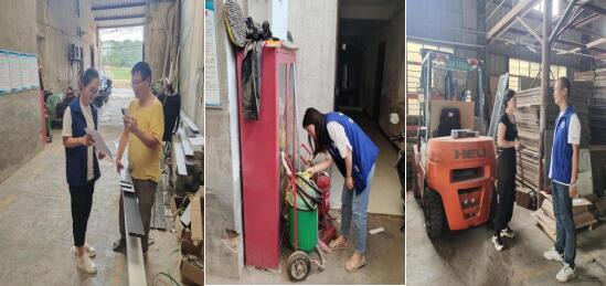 排查過(guò)程中,三位網(wǎng)格員各司其職。網(wǎng)格員方芳向企業(yè)負(fù)責(zé)人宣傳消防知識(shí),推薦企業(yè)關(guān)注“南京消防”公眾號(hào)。端木和麗檢查企業(yè)手推式滅火器等消防設(shè)備是否準(zhǔn)確、齊全、有效,并逐一檢查壓力,瓶體,軟管,噴嘴及相關(guān)設(shè)施,不錯(cuò)過(guò)一絲隱患。楊勇逐一檢查企業(yè)叉車操作員相關(guān)操作證書,提醒企業(yè)使用叉車時(shí)一定要注意安全,做好防范,并認(rèn)真及時(shí)登記等等。
