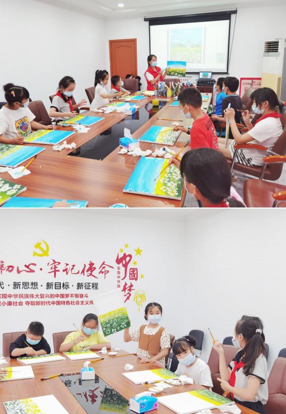 為了豐富轄區(qū)內(nèi)青少年的暑期生活,培養(yǎng)他們的繪畫(huà)能力和審美能力,8月30日下午,南京市江寧區(qū)淳化街道民主村新時(shí)代文明實(shí)踐站聯(lián)合關(guān)心下一代工作委員會(huì)和校外輔導(dǎo)站、街道社區(qū)教育中心和團(tuán)支部,組織轄區(qū)內(nèi)青少年開(kāi)展“七彩夏日 暑期創(chuàng)意水粉畫(huà)”主題活動(dòng)?;顒?dòng)現(xiàn)場(chǎng)邀請(qǐng)了南京蘇米藝術(shù)張梅老師進(jìn)行專(zhuān)題授課。
