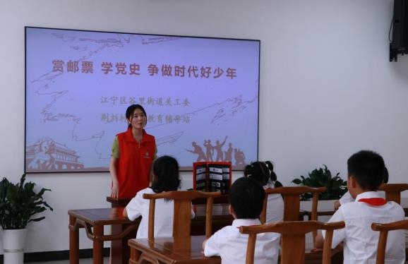 如果說中國共產(chǎn)黨的百年奮斗史是一本教科書,那一枚枚郵票就是書本上的目錄。在大塘金,“五老”志愿者翻開貼滿了建黨紀(jì)念郵票的收藏冊,詳細(xì)講述著每一張郵票上的歷史故事以及名人軼事,讓孩子們深刻體會到在中國共產(chǎn)黨的領(lǐng)導(dǎo)下,無數(shù)革命烈士拋頭顱、灑熱血,中國人民從站起來、到富起來再到強(qiáng)起來的輝煌歷程。一枚小小的郵票,將波瀾壯闊的歷史畫卷完整地展現(xiàn)在大家的眼前。
