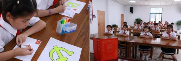 隨后,孩子們又回到了青木學(xué)堂,在“五老”志愿者的帶領(lǐng)下,開始手繪黨徽,將對中國共產(chǎn)黨的愛戴與擁護(hù)之情全部傾注在黨徽中。