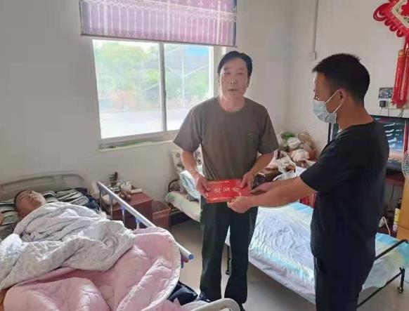三十多歲的吳冰自2006年入伍,2011年退伍,兩年前身患膠質(zhì)瘤,先前唯一的女兒也生病離世。如今自己癱瘓在床,也無法與人交流,生活十分困難。在吳冰家中,民兵營和退役軍人服務(wù)站一行人與他的家人進(jìn)行親切的交談,詢問吳冰的身體狀況和生活狀況,囑咐家人要好好照顧他的身體。同時,一行人還為他帶去了慰問金,讓他能夠在這中國傳統(tǒng)節(jié)日里感受到村里的關(guān)懷以及營造和諧、溫暖的節(jié)日氣氛。
