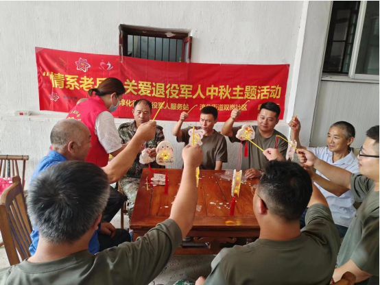 為了豐富退役軍人的生活,雙崗社區(qū)退役軍人服務(wù)站利用傳統(tǒng)節(jié)日、建軍節(jié)等節(jié)日積極開(kāi)展各式活動(dòng)。今年中秋節(jié)期間,雙崗社區(qū)退役軍人志愿服務(wù)隊(duì)積極邀請(qǐng)退役軍人共同參與“團(tuán)團(tuán)圓圓過(guò)中秋”活動(dòng),退役軍人圍坐在一起,聆聽(tīng)著志愿者講述中秋節(jié)的文化傳統(tǒng)、動(dòng)手制作中秋節(jié)花燈,還收到了來(lái)自社區(qū)的中秋節(jié)日禮品和濃濃祝福。“兩參”退役老兵王長(zhǎng)榮表示,“今年的中秋節(jié)很開(kāi)心、很溫暖,和老戰(zhàn)友們?cè)谝黄鸹貞浿贻p時(shí)候的軍旅生活,過(guò)了一個(gè)不一樣的中秋節(jié)!”