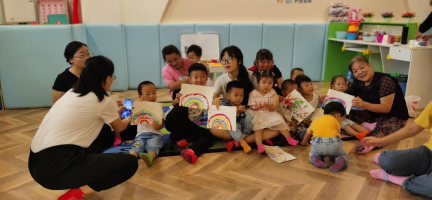 活動中,小朋友們第一次接觸到了顏料,他們用手代替筆,蘸著顏料在紙張上進行涂刷,繪制出了屬于自己的美麗彩虹。孩子們以一種快樂、興奮、自信的心情毫無顧忌地、認真地涂畫著。在此過程中不但可以讓孩子們感受和探索顏色,而且可以極大地提高他們的觸覺和視覺感官。“顏料對于小朋友來說,是很新奇的一種繪畫形式,在動手過程中會充滿了驚喜。”參與活動的家長說道。