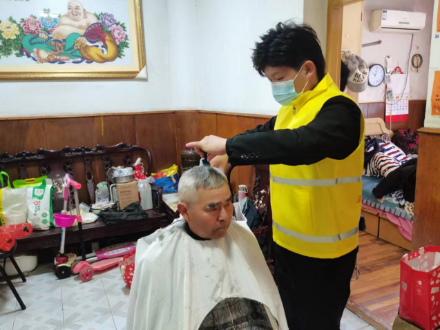 一大早堯安新村社區(qū)居家養(yǎng)老服務(wù)站內(nèi)便來(lái)了許多老人,時(shí)間銀行志愿者們帶著理發(fā)工具在居家養(yǎng)老服務(wù)站做好準(zhǔn)備,為陸續(xù)到來(lái)的居民開展理發(fā)服務(wù),只見他們熟練的為老人圍上理發(fā)布,詢問(wèn)著對(duì)頭發(fā)長(zhǎng)度的需求,還時(shí)不時(shí)地和老人聊聊家常,不一會(huì)兒,一個(gè)清爽利落的發(fā)型就剪好了。
