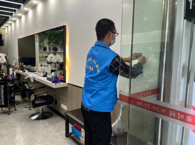 行動中,志愿者們來到花港路沿街門面房,逐戶走入每家商戶,檢查防疫、消防等安全措施,提醒商戶佩戴口罩。對防疫措施不完善的商戶要求現(xiàn)場整改,對沒有辦理污水排放許可證的商戶進行督促告知辦理所需材料,對沒有領(lǐng)取門前三包責(zé)任書的商戶提醒其即使來社區(qū)領(lǐng)取。