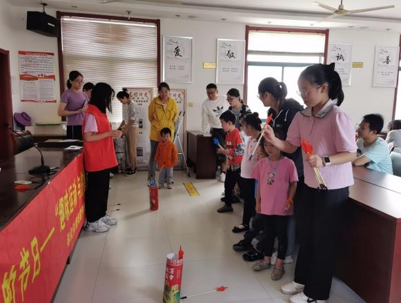 在接下來的環(huán)節(jié)中,志愿者將小朋友們進行了分組,帶領大家開展投鏢和投壺比賽,投鏢比賽以投中數(shù)字加起來最高的一組獲勝,投壺比賽則是投中箭羽最多的一組獲勝,每一項結束后,獲勝隊伍都可以獲得積分。志愿者講解完游戲規(guī)則后,孩子們迫不及待地開始了游戲,在志愿者和家長的引領和保護下,為自己的隊伍贏取了積分和小禮品。