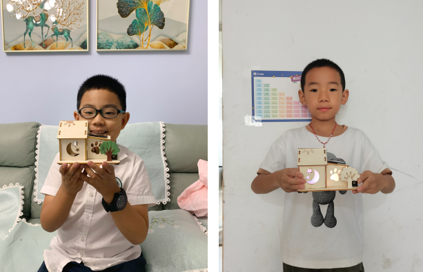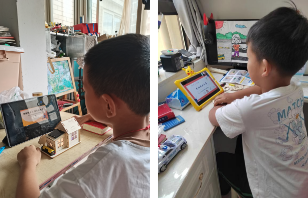 隨后,志愿者在線遠(yuǎn)程講解、演示太陽能小木屋手工制作步驟。為了讓小朋友們更好地掌握制作技巧,志愿者細(xì)致地分解每個(gè)組裝、拼接步驟。在志愿者的引導(dǎo)下,小朋友們紛紛開動(dòng)腦筋,自己動(dòng)手將散落的零件逐漸拼裝成完整的太陽能小木屋。作品組裝完成后,小朋友們的臉上都露出了自豪的笑容。