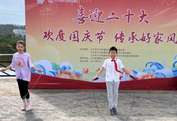 活動中,小朋友們?nèi)σ愿埃錆M了活力,展現(xiàn)出了不凡的實力,現(xiàn)場氣氛十分熱烈。跳繩運動不僅鍛煉了身體、愉悅了身心,還能提高自身的協(xié)調(diào)能力。比賽結(jié)束,小朋友每人都拿到一份精美的禮品,臉上洋溢出歡樂的笑容。金秋送爽,丹桂飄香。為慶祝中華人民共和國成立73周年,迎接黨的二十大勝利召開,弘揚優(yōu)秀的家風(fēng)文化。9月25日,牧龍社區(qū)婦聯(lián)、衛(wèi)計聯(lián)合皓月志愿服務(wù)中心組織開展“歡度國慶節(jié) 傳承好家風(fēng)”主題活動。