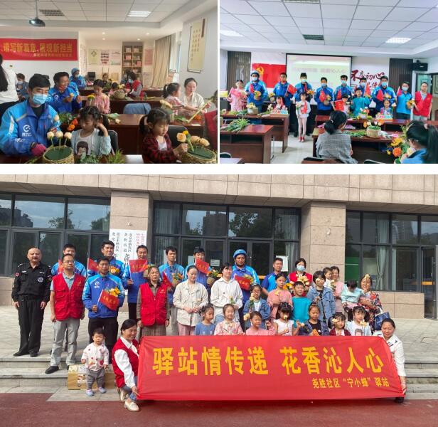 社區(qū)黨總支邀請外賣小哥及其子女開展“驛站情傳遞 花香沁人心”花藝制作活動,把對新業(yè)態(tài)新就業(yè)群體從業(yè)人員及其家庭的關(guān)愛落到實(shí)處,豐富新業(yè)態(tài)新就業(yè)群體家庭子女的文化生活,愿他們?nèi)缤r花一樣燦爛綻放。活動伊始,志愿者深入淺出地講解和演示了插花的基礎(chǔ)知識、工具使用、插花造型、色彩搭配以及如何剪切和用綠葉填充空白等技法。每組家庭都仔細(xì)聆聽,細(xì)致觀摩,認(rèn)認(rèn)真真得動手制作起來,在互相配合中找到了樂趣,在交流互動中增進(jìn)了親子關(guān)系,一束束精美的花藝作品逐漸完成了,活動現(xiàn)場氣氛十分融洽。勤勞的外賣小哥將 “文明衛(wèi)士”小紅旗插在電動車上,走街串巷入戶,把花香與文明傳送到城市的每一個角落。