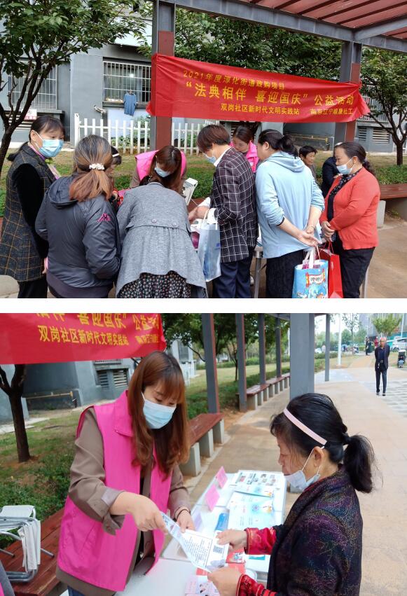 為慶祝中華人民共和國成立73周年,迎接黨的二十大勝利召開,進(jìn)一步激發(fā)廣大居民的愛國情懷,弘揚(yáng)愛國主義精神。9月28日上午,在國慶節(jié)來臨之際,南京市江寧區(qū)淳化街道雙崗社區(qū)聯(lián)合南京江寧順康孕嬰指導(dǎo)服務(wù)中心開展了“法典相伴 喜迎國慶 ”主題宣傳活動(dòng)。