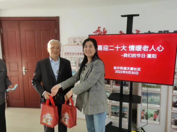為喜迎黨的二十大勝利召開,大力弘揚(yáng)中華民族尊老敬老愛老助老的傳統(tǒng)美德,積極營造關(guān)心關(guān)愛老年人健康生活的濃厚氛圍,9月30日,南通市通州區(qū)金沙街道天熹社區(qū)開展了“喜迎二十大,情暖老人心”為主題的重陽節(jié)慰問活動,為轄區(qū)90周歲以上老人送上了濃濃的節(jié)日祝福和慰問品。