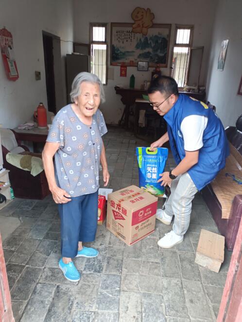 9月 29日下午,晶明村網(wǎng)格員魏晨旭帶著節(jié)日慰問品,看望慰問了轄區(qū)5位90歲以上“老壽星”,為他們送去牛奶、雞蛋、食用油、大米等慰問品以及節(jié)日的祝福。