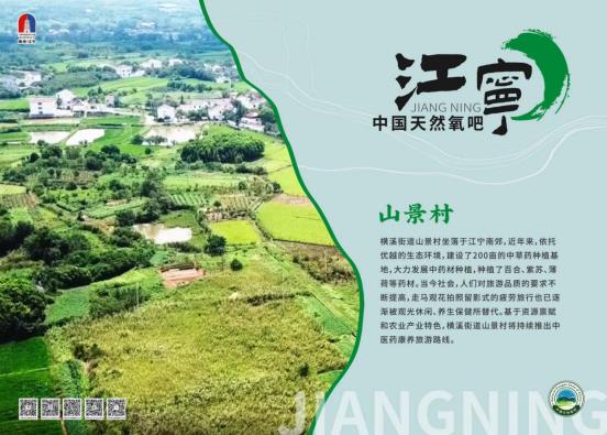 山景村坐落于江寧南郊,山清水秀,景色怡人,近年來依托優(yōu)越的生態(tài)環(huán)境,建設(shè)了200畝的中草藥種植基地,大力發(fā)展中藥材種植,種植了百合、紫蘇、薄荷等藥材。2021年1月,被江蘇省生態(tài)環(huán)境廳命名為第三批江蘇省生態(tài)文明建設(shè)示范鎮(zhèn)村?;谫Y源稟賦和農(nóng)業(yè)產(chǎn)業(yè)特色,山景村將持續(xù)推出中醫(yī)藥康養(yǎng)旅游路線,以觀光休閑、養(yǎng)生保健為主,滿足人們對(duì)旅游品質(zhì)不斷提高的要求。