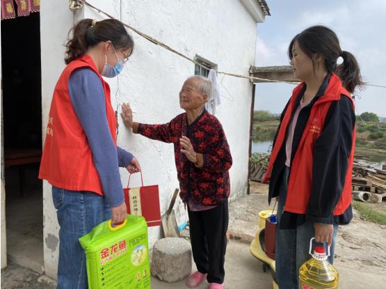 此外,志愿者還帶著食用油、大米、毛巾等生活必需品,對(duì)轄區(qū)內(nèi)的高齡老人開展走訪慰問,了解他們的身體情況和日常需求,祝福他們重陽(yáng)節(jié)快樂,身體健康、生活順?biāo)臁?/p>