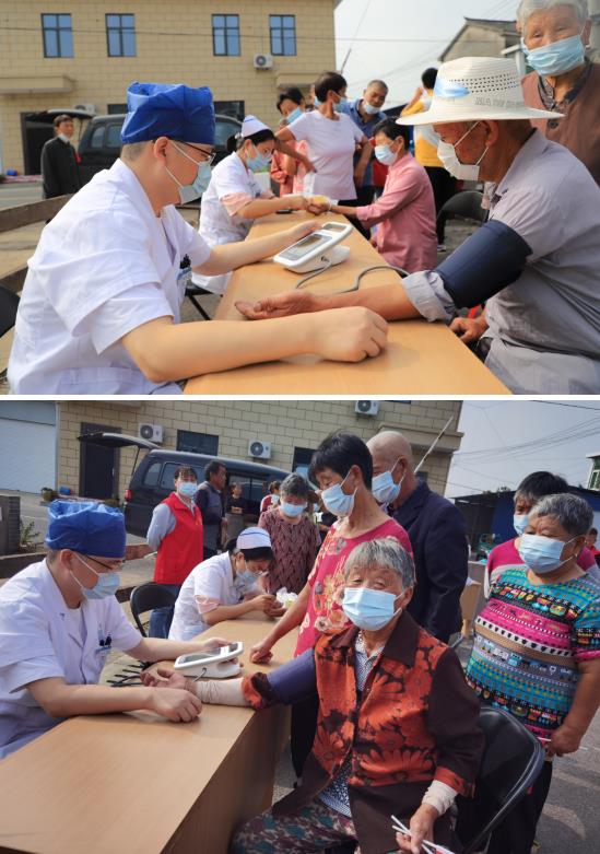 廣場(chǎng)的另一邊,健康義診在有序開展著。老人們便來到趙家村廣場(chǎng)上進(jìn)行排隊(duì)問診?;顒?dòng)現(xiàn)場(chǎng),土橋醫(yī)院的社區(qū)醫(yī)生們?yōu)榇蠹颐赓M(fèi)提供量血壓、測(cè)血糖、聽診等服務(wù),很多老人把自身遇到的問題一一告知,醫(yī)生也耐心地解答他們的問題。