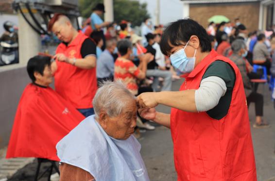 在理發(fā)義剪服務(wù)的點(diǎn)位,老人們有序排著隊(duì)伍,他們只需要告訴理發(fā)師自己想要的發(fā)型,便可享受到理發(fā)店的專屬理發(fā)服務(wù)。