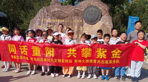 為了慶祝中國傳統(tǒng)節(jié)日重陽節(jié),2022年10月3日上午,馬群街道關(guān)工委、青春志愿同盟、青馬社區(qū)居委會、南京師范大學(xué)微微星光志愿服務(wù)隊聯(lián)合組織青少年家庭開展“同話重陽 共攀紫金”登山賽活動。青馬社區(qū)的居民家庭在紫金山登山過程中,打卡了沿途六個志愿者設(shè)立的打卡點(diǎn),并且完成了三個重陽節(jié)小游戲,最后順利登頂,增強(qiáng)了社區(qū)居民的凝聚力與向心力。