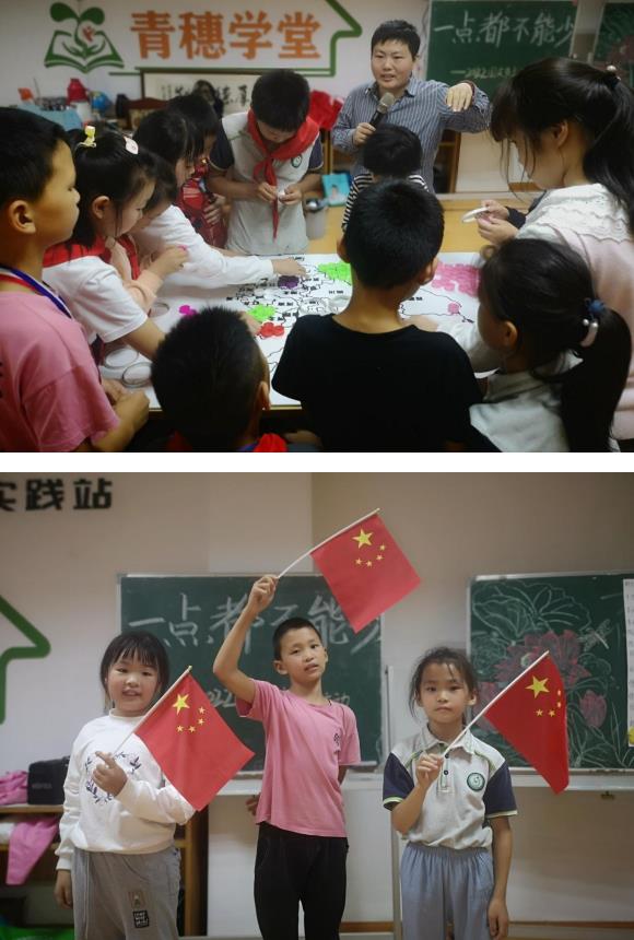 在國(guó)慶節(jié)之際,鶴齡社區(qū)精心挑選多篇“革命烈士紀(jì)念碑碑文”,由高老師帶領(lǐng)青穗學(xué)子共同朗讀,緬懷烈士,傳出紅色基因,共拼中華人民共和國(guó)地圖,重點(diǎn)為同學(xué)們講解當(dāng)前的臺(tái)海狀況,告訴同學(xué)們關(guān)乎國(guó)土就要寸土必爭(zhēng),一點(diǎn)都不能少,讓同學(xué)們受到一次精神上的洗禮,引導(dǎo)樹(shù)立正確的歷史觀、民族觀、國(guó)家觀、文化觀,進(jìn)一步弘揚(yáng)社會(huì)主義核心價(jià)值和民族精神。