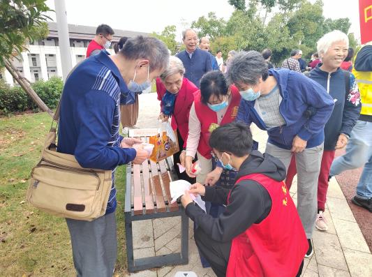 此次活動通過掌上云社區(qū)群發(fā)布通知,當(dāng)天早上九點,大家準(zhǔn)時在姚坊門文體公園入口集合,充滿熱情。到達(dá)后,社區(qū)黨總支為每一位老人發(fā)放重陽節(jié)祝??ㄆ?,引導(dǎo)大家安全登高。堯安新村社區(qū)黨員們大多是年過六旬的老黨員,但大家登高的勁頭絲毫不亞于年輕人,各個步伐穩(wěn)健,走在蜿蜒的石階上,一邊欣賞著沿途的堯化金秋的美景,一邊聊聊著近年來的變化,一路上充滿著歡聲笑語,不一會便成功登上坡頂。