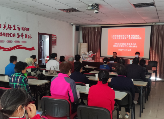 10月10日,南京市棲霞區(qū)馬群街道果場(chǎng)社區(qū)垃圾分類(lèi)工作小組依托社區(qū)新時(shí)代文明實(shí)踐站文化服務(wù)平臺(tái),借助“齊益果”積分制志愿者、社區(qū)民兵志愿者和社區(qū)教育資源等志愿服務(wù)力量,在社區(qū)三樓活動(dòng)室組織社區(qū)黨員、居民,開(kāi)展“垃圾分類(lèi)大家談”志愿服務(wù)活動(dòng),給社區(qū)黨員、居民開(kāi)通垃圾分類(lèi)知識(shí)學(xué)習(xí)和建言獻(xiàn)策的渠道,進(jìn)一步推動(dòng)社區(qū)垃圾分類(lèi)工作深入開(kāi)展。