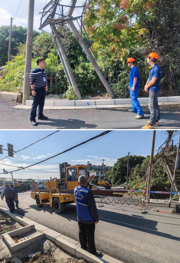 為保障來(lái)往行人車(chē)輛安全,棲霞街道新合村立即聯(lián)系了電線桿產(chǎn)權(quán)單位南京電信公司查看現(xiàn)場(chǎng),城治委公眾委員要求其盡快把撞斷的電線桿拖走消險(xiǎn)處理。經(jīng)過(guò)與電信公司現(xiàn)場(chǎng)勘查和溝通,10月11日上午,南京電信公司安排施工單位對(duì)這兩根電線桿消險(xiǎn)處理?,F(xiàn)場(chǎng),城治委公眾委員和城市治理志愿者幫忙一起拉警戒線,維持交通秩序。經(jīng)過(guò)一上午的處理,電線桿拖走消險(xiǎn),線纜重新整理好。