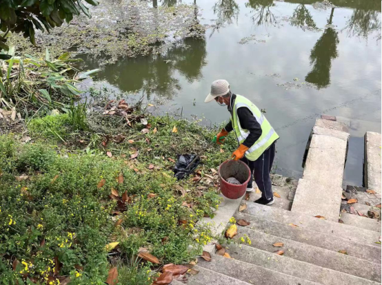 “社區(qū)衛(wèi)生服務(wù)中心附近的河道有漂浮垃圾需要清理,我在這邊等你過(guò)來(lái)。”11月10日,南京市江寧區(qū)淳化街道周子村黨總支書(shū)記熊宣文在進(jìn)行日常河道巡查時(shí),發(fā)現(xiàn)存在漂浮垃圾清理不及時(shí)的情況,立即安排保潔人員進(jìn)行清理。