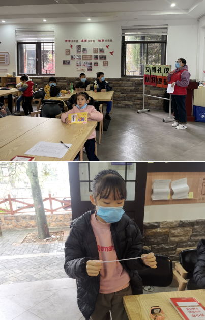 為了讓學(xué)生意識到文明的重要性,并在生活與學(xué)習(xí)中努力提高自己的文明修養(yǎng),社區(qū)志愿者以通俗易懂的語言,形象生動的事例,向孩子們講解了文明禮儀在日常學(xué)習(xí)和生活中的重要意義,讓青少年明白了文明禮儀不僅是個人素質(zhì)的體現(xiàn),更是從一定程度上反映了一個家庭、一個小區(qū)、一個社區(qū)的文明素養(yǎng)?;顒舆€安排了閱讀環(huán)節(jié),每人一句文明禮儀小知識,讓孩子們在閱讀的同時加深其對文明禮儀的印象,強(qiáng)化文明意識?;顒幼詈笾驹刚哌€向孩子們發(fā)出倡議,號召大家在日常生活學(xué)習(xí)中遵守文明禮儀、遵守社會秩序,把學(xué)到的文明行為運(yùn)用到日常的生活之中,讓文明禮儀成為每個青少年的自覺言行。