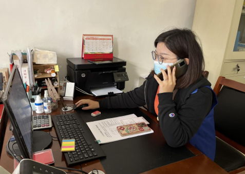 村001網格員端木和麗,負責大數據流調電話,及時與外地返寧居民聯系,提醒他們到村委會報備,并佩戴好口罩,做好自我防護。