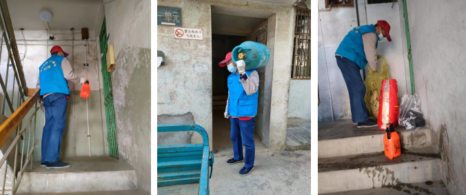 勇當(dāng)防疫“貼心管家”。樓棟長(zhǎng)是連接社區(qū)與居家隔離群眾的重要紐帶。為引導(dǎo)群眾做好疫情防護(hù),確保居家隔離市民的日常生活需求。隔離人員因家中煤氣需要更換,便聯(lián)系他們的退休黨員樓棟長(zhǎng)滕師傅,滕師傅毫不猶豫的一口氣到五樓,把幾十斤重的煤氣罐送到隔離人員家門(mén)口,順便把隔離人員家中的日常垃圾收走,同時(shí)在門(mén)口消毒處理。