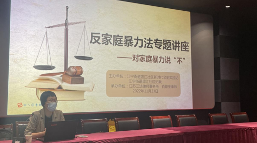 11月25日是“國(guó)際反家暴日”,為讓轄區(qū)婦女居民進(jìn)一步了解家庭暴力的危害,普及《反家庭暴力法》,護(hù)航家庭幸福,11月23日,南京市江寧區(qū)江寧街道盛江社區(qū)新時(shí)代文明實(shí)踐站聯(lián)合社區(qū)婦聯(lián)開(kāi)展反家暴法講座。