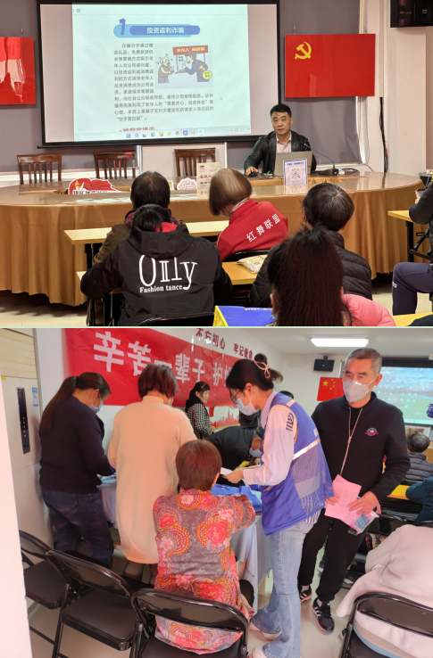 “詐騙分子通過(guò)贈(zèng)送禮品等營(yíng)銷方式吸引老人的興趣,以投資返利或消費(fèi)返利的方式誘導(dǎo)老年人成為會(huì)員……”講座中,余科長(zhǎng)通過(guò)犯罪分子常用的詐騙手段,介紹反詐騙知識(shí)。同時(shí),現(xiàn)場(chǎng)社區(qū)網(wǎng)格員為與會(huì)人員發(fā)放宣傳單頁(yè),余科長(zhǎng)介紹邪教的種類、特征、危害及如何識(shí)別邪教等相關(guān)知識(shí),并通過(guò)圖文解說(shuō)使群眾科學(xué)認(rèn)識(shí)邪教,幫助群眾分辨邪教與宗教以及一系列危害。