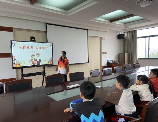 活動(dòng)開(kāi)始,工作人員先向孩子們科普了感恩節(jié)的相關(guān)知識(shí),讓孩子們知道感恩節(jié)的由來(lái),并用淺顯的語(yǔ)言,真摯的情感,動(dòng)人的故事引導(dǎo)大家用心靈去發(fā)現(xiàn)和感受身邊的事物,讓大家學(xué)會(huì)將愛(ài)的語(yǔ)言及行為傳遞給他人,讓愛(ài)老,敬老,助老的傳統(tǒng)美德在每個(gè)孩子的心靈生根發(fā)芽。孩子們也圍在一起暢談老師對(duì)自己的付出與教誨,講述同伴對(duì)自己的關(guān)心和幫助,感悟政府對(duì)自己關(guān)懷與溫暖。