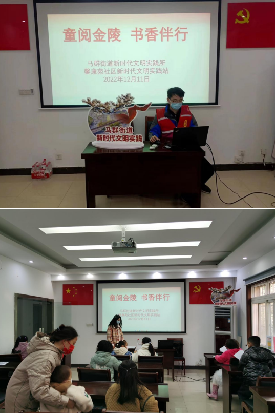 2022年12月11日上午,南京市棲霞區(qū)馬群街道馨康苑社區(qū)新時(shí)代文明實(shí)踐站聯(lián)合馬群街道新時(shí)代文明實(shí)踐所在馨康苑社區(qū)開展了“童閱金陵 書香伴行”閱讀宣講活動(dòng)。此次閱讀宣講活動(dòng)旨在動(dòng)員廣大社區(qū)居民養(yǎng)成全民閱讀的良好習(xí)慣,同時(shí)為社區(qū)建設(shè)精神文明活動(dòng)建言獻(xiàn)策,形成人人參與、共建共治共享的精神文明社區(qū)氛圍。