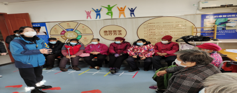 活動中康復治療師魏文會首先向大家講解如何有效佩戴口罩并向大家展示佩戴口罩的正確步驟。同時告知大家在外時佩戴口罩,盡量不用手觸摸口鼻眼,回家后將衣物消毒并用流動的水清洗雙手。如果發(fā)現(xiàn)感冒發(fā)燒不要慌,勤測體溫,多休息,多喝水,合理用藥。