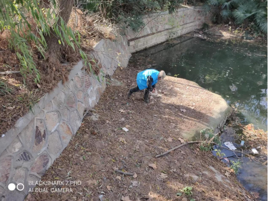 清晨,藍(lán)馬甲在日常巡查河道時(shí)發(fā)現(xiàn)河邊水草上面漂浮著很多落葉垃圾,嚴(yán)重影響周邊環(huán)境。發(fā)現(xiàn)該情況后,藍(lán)馬甲們立即拿著笤帚、袋子、火鉗、網(wǎng)兜來(lái)到河道邊,打撈河道里的漂浮物,撿拾河岸邊的垃圾和落葉,忙的熱火朝天。在他們的辛勤付出下,原本漂浮在水面上的水葫蘆、浮萍、水草及河面河岸垃圾,都已打撈清除完畢,部分生活垃圾也進(jìn)行了無(wú)害化處理。經(jīng)過(guò)他們的清理,河面清澈見(jiàn)底,河道兩側(cè)垃圾不見(jiàn)蹤影,環(huán)境更加整潔干凈。