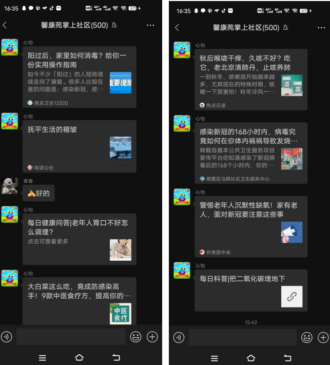 “陽了,最近居家隔離,通過社區(qū)群學習了不少防疫知識,應(yīng)對病毒也更有心得了”、“疫情當下,我們在做好個人防護的同時,也要注重自身的營養(yǎng)狀況”、“近期許多人都陷入了“幻陽”恐慌,原來,比陽性更可怕的,是我們的‘疫情心態(tài)’”、“疫情之下,各種訊息撲面而來,魚龍混雜,讓人難以分辨。感謝工作人員的暖心推送,選藥用要藥科學多了”.....此系列宣傳工作受到了居民的紛紛點贊,大家一致表示“實用!受益!”
