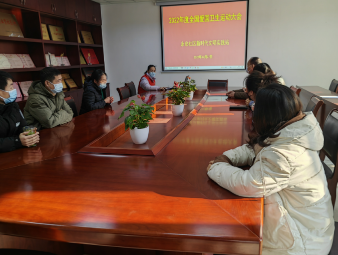 為大力營(yíng)造干凈整潔的社區(qū)衛(wèi)生環(huán)境,促進(jìn)的良好社會(huì)氛圍,12月27日上午,南京市江寧區(qū)東山街道永安社區(qū)組織全體社區(qū)工作人員收看2022年度全國(guó)愛國(guó)衛(wèi)生運(yùn)動(dòng)大會(huì)。