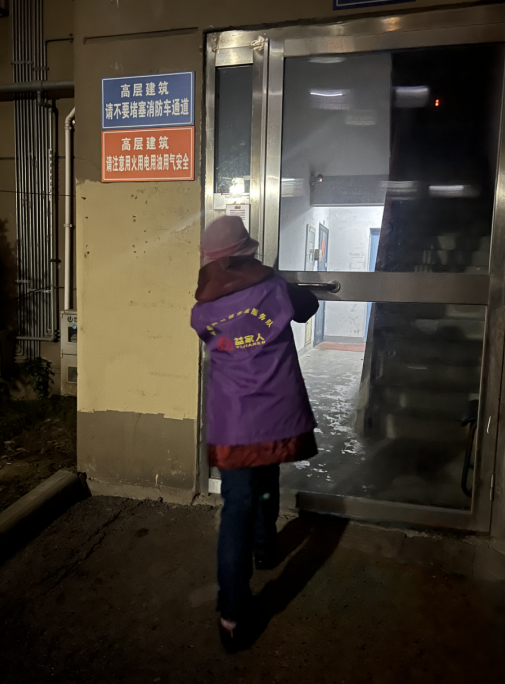 志愿者針對小區(qū)的公共場所、交通要道、單元樓道加強(qiáng)巡邏工作,看到未關(guān)的單元門及時(shí)上去關(guān)好,并向居民群眾宣治安防范、消防安全的重要性。同時(shí)提醒居民由于天氣寒冷要注意防火、用電、用氣的安全,外出時(shí)關(guān)好門窗、佩戴好口罩,注意防火、防盜、防詐騙及個(gè)人防護(hù)等安全事項(xiàng),增強(qiáng)廣大居民的安全防范意識(shí),對巡邏中發(fā)現(xiàn)的問題及時(shí)勸阻,將各種安全隱患消滅在萌芽狀態(tài)。