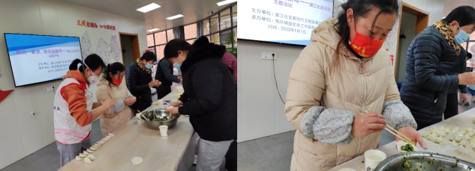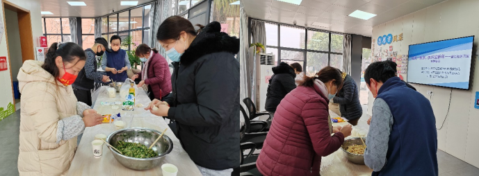 當(dāng)天上午參加活動的居民們早早就來到活動現(xiàn)場,與社區(qū)工作人員及志愿者們一起做起了準(zhǔn)備工作,洗菜、切菜、調(diào)料、調(diào)餡……大家分工明確,熱情滿滿。一會兒功夫,所有的餡料就都準(zhǔn)備完畢。居民們在志愿者的協(xié)助下,將新年的祝福與美好愿望包進(jìn)餃子里,每一個餃子都餡料飽滿、“白白胖胖”!