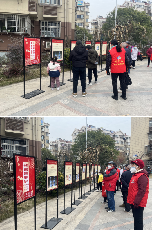本次活動(dòng)以《中國(guó)傳統(tǒng)吉祥圖案》展板形式在社區(qū)廣場(chǎng)進(jìn)行展出,以鴻福、長(zhǎng)壽、吉祥、喜慶等吉祥寓意分類,展示了中國(guó)傳統(tǒng)吉祥圖案的符號(hào)構(gòu)成及其背后的故事,每天吸引了較多居民前來(lái)觀賞,激發(fā)居民對(duì)優(yōu)秀傳統(tǒng)文化的興趣,并樹立對(duì)本民族文化的自信心。居民喜悅得說(shuō):“這次活動(dòng)讓我們學(xué)到了非遺知識(shí),體會(huì)到了非遺文化的魅力,也豐富文化生活,真是太好了!”
