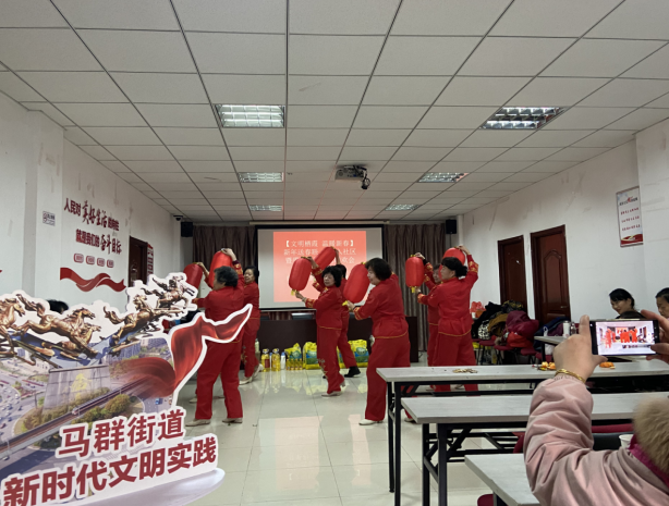 在活動現(xiàn)場,來自社區(qū)居民學校的舞蹈隊的志愿者們以兩個舞蹈節(jié)目作為開場。她們用燈籠舞點燃大家迎接新春佳節(jié)的熱情,以扇子舞的清風愉快表達對即將來臨的春天氣息的期盼。在綽約的舞姿中,現(xiàn)場的黨員、居民們紛紛鼓掌,現(xiàn)場的氣氛十分歡樂。