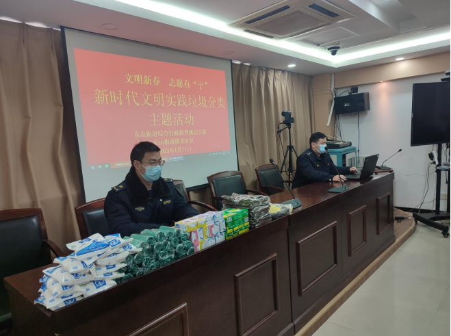 1月11日,南京市江寧區(qū)東山街道邵圣社區(qū)聯(lián)合綜合行政檢查執(zhí)法大隊開展“文明新春 志愿有寧”新時代文明實踐垃圾分類主題宣傳活動,向垃圾分類督導員送上暖心"年禮"。