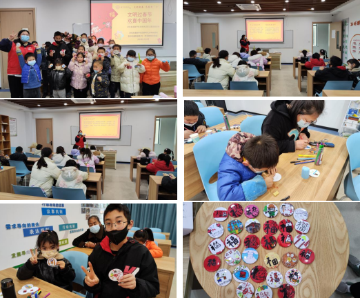 文明過節(jié),歡度新春。社區(qū)青少年兒童手繪制作“文明過節(jié)”徽章,倡議度過一個(gè)平安健康、低碳環(huán)保、勤儉節(jié)約、平安祥和、文明和諧的新年,倡導(dǎo)樹立文明過年新風(fēng),用文明之風(fēng)傳承傳統(tǒng)習(xí)俗,用文明行為歡度祥和新年。