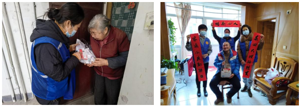 隨后網(wǎng)格員將一幅幅寓意吉祥美滿的春聯(lián)送至轄區(qū)困難群眾的家中,并提前送上對于他們的新春祝福。一同送去的還有愛心禮包,禮包有口罩、退燒藥、體溫計、消毒泡騰片、抗原試紙等,網(wǎng)格員細致的為他們介紹用法及注意事項。“新年即將到來,愛心禮包、春聯(lián)等物資禮雖輕,但是代表的是一份心意,是社區(qū)的關(guān)愛。”拿到愛心禮包的嚴奶奶開心的說“感謝黨和政府的關(guān)心,感謝網(wǎng)格員上門送溫暖,尤其是今年疫情以來,對我們的關(guān)心和照顧,讓我感受的社區(qū)的溫暖、網(wǎng)格員的關(guān)懷,住在這里我很開心,這個春節(jié)更是感到幸福滿滿”。
