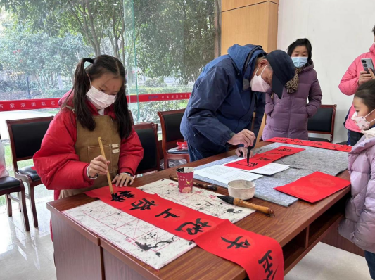 1月16日下午南京市江寧區(qū)秣陵街道湖濱社區(qū)新時代文明實踐站在百家湖國際花園活動室開展了“我們的節(jié)日”系列活動“文明江寧 溫暖新春”暨“志愿有’寧’”-寫春聯(lián)送福活動,邀請了書法協(xié)會山崗老師現(xiàn)場寫春聯(lián)和福字給居民,讓孩子們在繽紛的冬日里體會新春的喜悅。