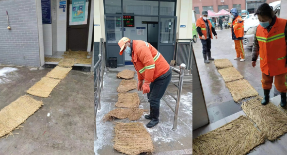 15日白天雪漸止、人未歇,針對(duì)巡查中發(fā)現(xiàn)的部分路段融雪后出現(xiàn)積水現(xiàn)象,為提前規(guī)避16-17日低溫冰凍天氣對(duì)群眾出行的影響,城管辦以積雪結(jié)冰區(qū)域?yàn)橹攸c(diǎn),協(xié)調(diào)環(huán)衛(wèi)人員集中掃雪除冰,對(duì)集鎮(zhèn)農(nóng)貿(mào)市場(chǎng)出入口、公廁瓷磚地面鋪設(shè)地墊、草墊等,有效避免結(jié)冰打滑,為民提供貼心服務(wù)。