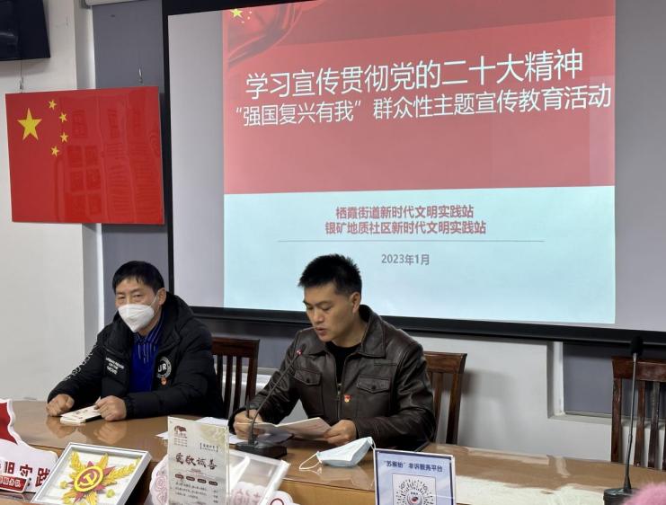 為更好地學習宣傳貫徹黨的二十大精神,1月17日,南京市棲霞區(qū)棲霞街道全民閱讀辦聯(lián)合銀礦地質(zhì)社區(qū)黨總支開展學習貫徹黨的二十大精神“強國復興有我”群眾性主題宣傳教育活動。