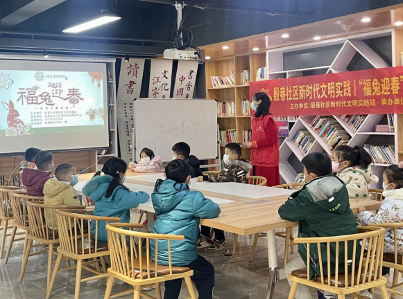 2023年是癸卯兔年,生肖兔在十二地支中對應(yīng)的是“卯”,被當(dāng)做希望的象征,代表了萬物復(fù)蘇、蘊藏?zé)o限生機。在傳統(tǒng)習(xí)俗中,兔兔更是寓意美好,活潑可愛,象征無限生命力。為了共迎新春,慶祝兔年的到來,進一步豐富社區(qū)居民的文化生活,營造歡樂祥和的節(jié)日氛圍, 2023年1月18日,江寧區(qū)秣陵街道殷巷社區(qū)新時代文明實踐站聯(lián)合江寧區(qū)微光閱讀服務(wù)中心,在康博睦鄰書房開展兔年春節(jié)主題活動。
