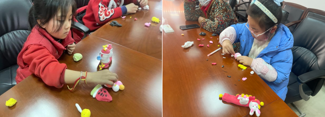 為了讓傳統(tǒng)文化走進更多人的心中,清修村還開展了DIY非遺手工捏面塑活動,老師在活動現(xiàn)場講解捏面技巧、動作要領等,社區(qū)工作人員把帶來的面團分給現(xiàn)場的小朋友,讓大家自己動手嘗試,大家經(jīng)過不懈努力,一幅幅栩栩如生的藝術形象便在指掌之間脫手而出,小朋友臉上露出甜甜的笑容。