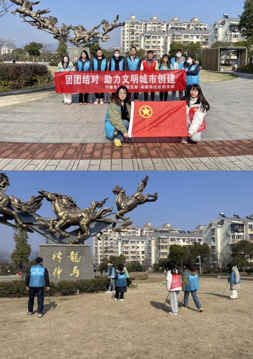活動(dòng)開(kāi)始前,兩位團(tuán)支部書(shū)記介紹各自支部成員,讓大家初步認(rèn)識(shí),打開(kāi)了青年團(tuán)員之間的交流互動(dòng)、互學(xué)互促新局面。隨后,大家一同走向南灣營(yíng)廣場(chǎng),對(duì)廣場(chǎng)環(huán)境衛(wèi)生進(jìn)行排查清理,不落下任何一個(gè)角落,不放過(guò)任何一個(gè)細(xì)節(jié)。大家手持工具分工合作,密切配合,有序清掃地面垃圾,他們用實(shí)際行動(dòng)展現(xiàn)青春風(fēng)采,號(hào)召更多居民主動(dòng)投身到全國(guó)文明典范城市創(chuàng)建中,共建美麗家園。